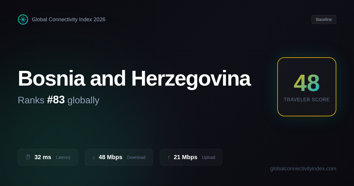 Source: Global Connectivity Index – Bosnia and Herzegovina Connectivity Profile (2026)