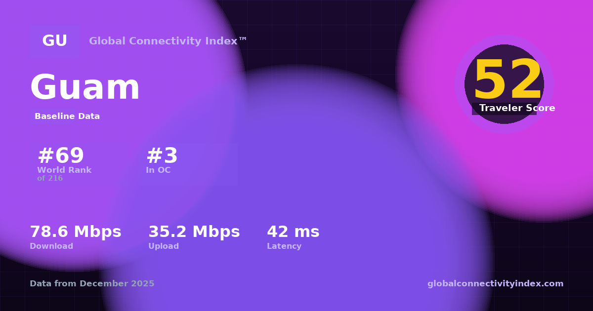 Global Connectivity Index (2025). Country: Guam. Connectivity score: 52/100. Available at: https://globalconnectivityindex.com/share/c/gu