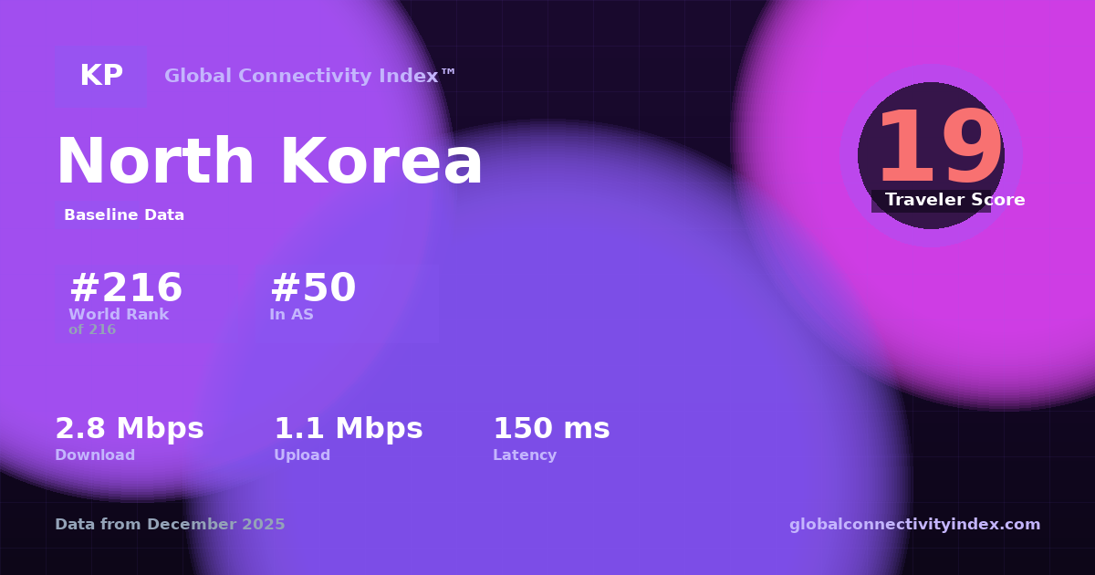 Global Connectivity Index (2025). Country: North Korea. Connectivity score: 19/100. Available at: https://globalconnectivityindex.com/share/c/kp