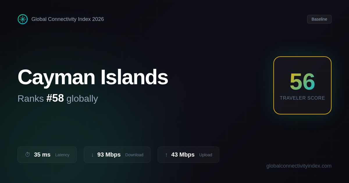 Cayman Islands ranked #57 globally for internet connectivity (2026)