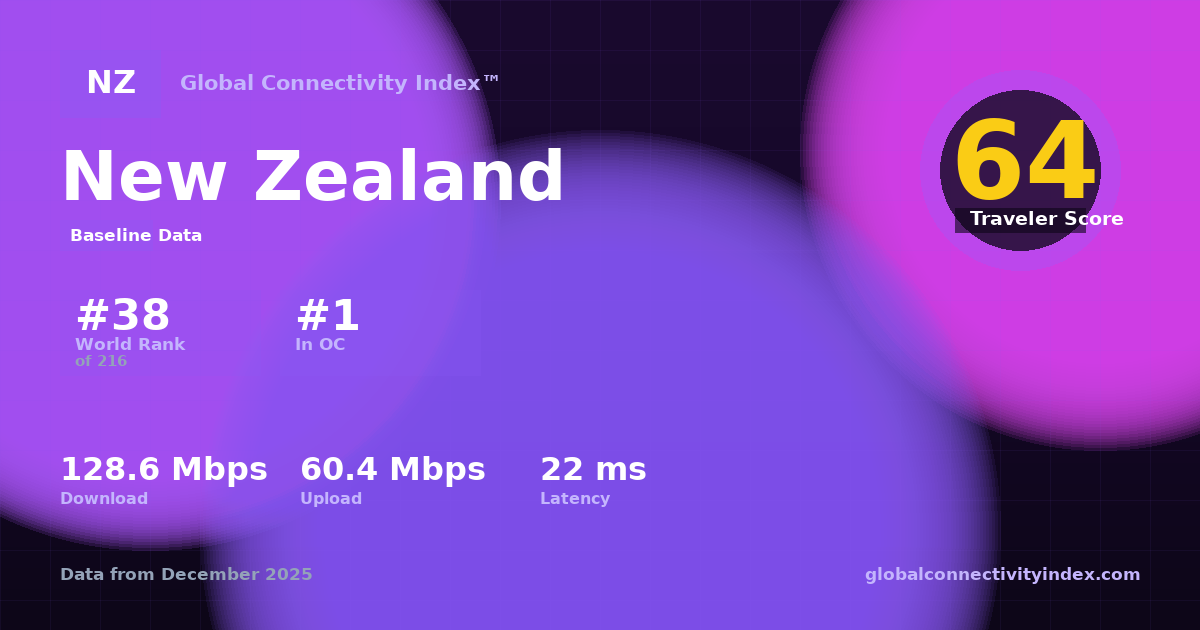 Global Connectivity Index (2025). Country: New Zealand. Connectivity score: 64/100. Available at: https://globalconnectivityindex.com/share/c/nz