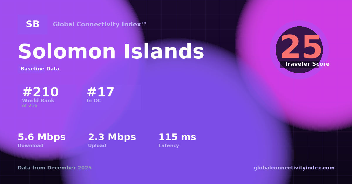 Global Connectivity Index (2025). Country: Solomon Islands. Connectivity score: 25/100. Available at: https://globalconnectivityindex.com/share/c/sb