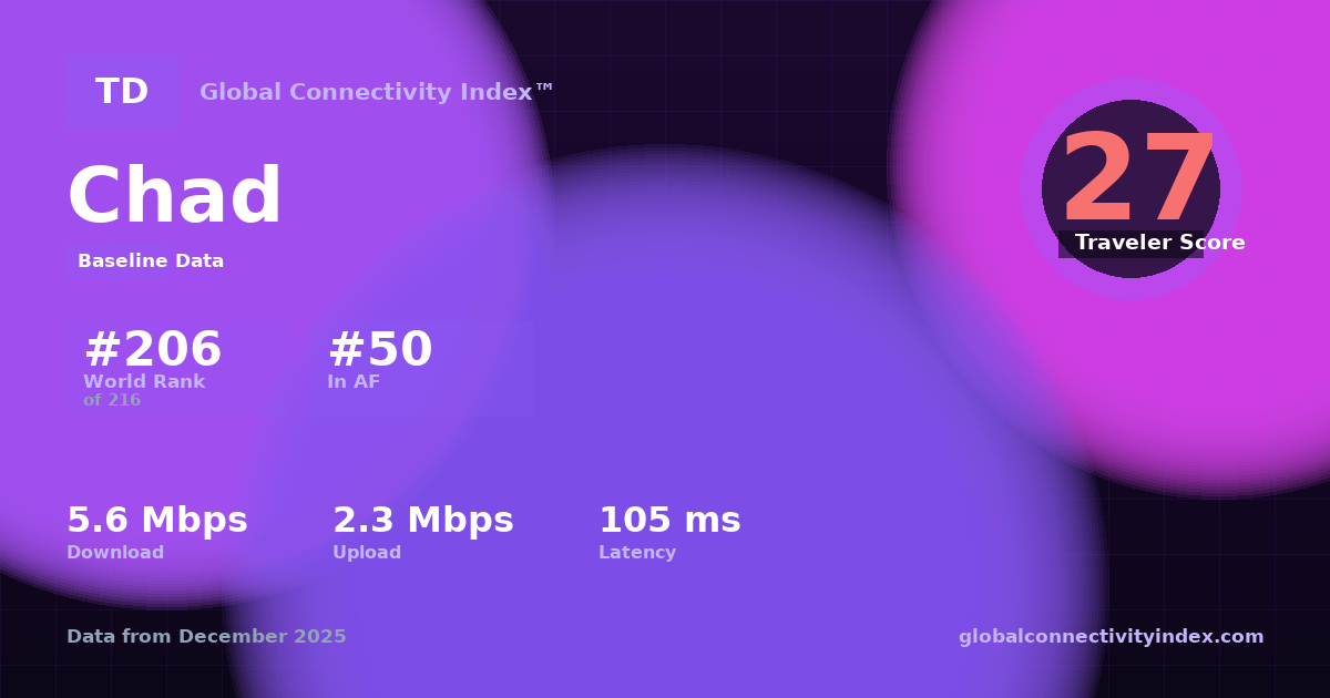 Global Connectivity Index (2025). Country: Chad. Connectivity score: 27/100. Available at: https://globalconnectivityindex.com/share/c/td
